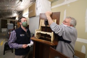 Go behind the scenes at Golden History Museum & Park to see the inner workings of the 1973 grandfather clock that once kept the time at Woods Mortuary in Golden, Colorado. The historic pendulum grandfather clock made by Ridgeway has a German “Urgos” movement. It sat in the lobby of Woods Mortuary at 1100 Washington Avenue until the business closed in 2017. The timepiece is undergoing careful conservation before installation and public display at Golden History Museum.